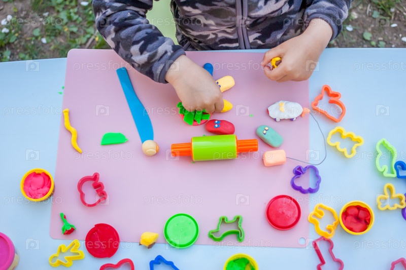 Мальчик играет с пластилином