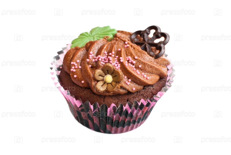 Шоколадный кекс на белом фоне