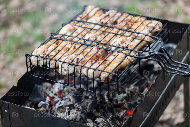 Курица готовится на гриле на открытом воздухе