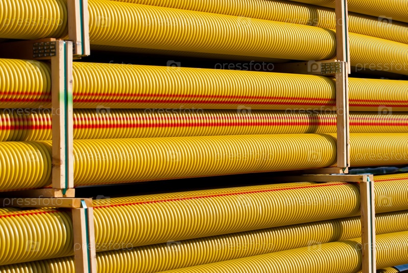 Аккуратно уложенные трубы на строительной площадке