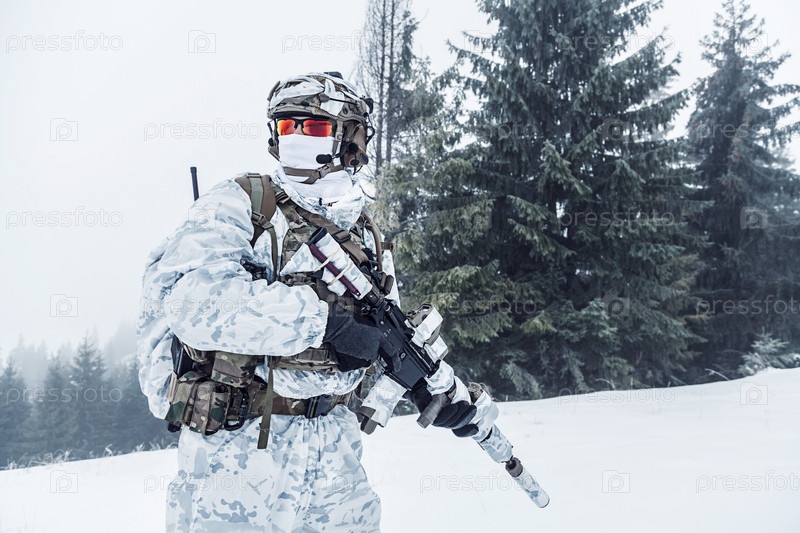 Военный зимой в горах
