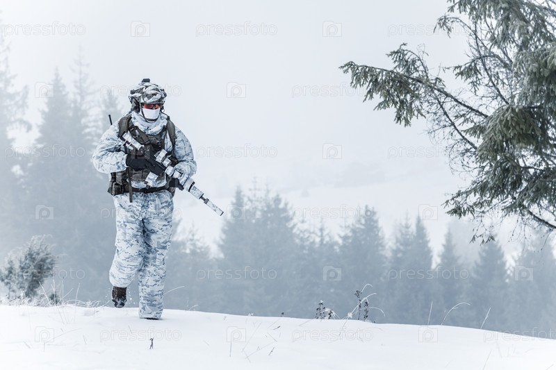 Военный зимой в горах