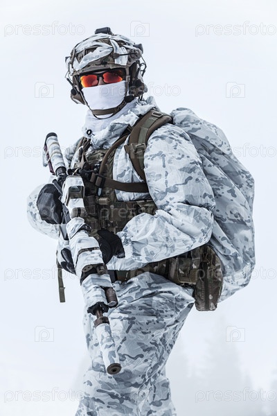 Военный зимой в горах