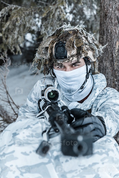 Военный зимой в горах