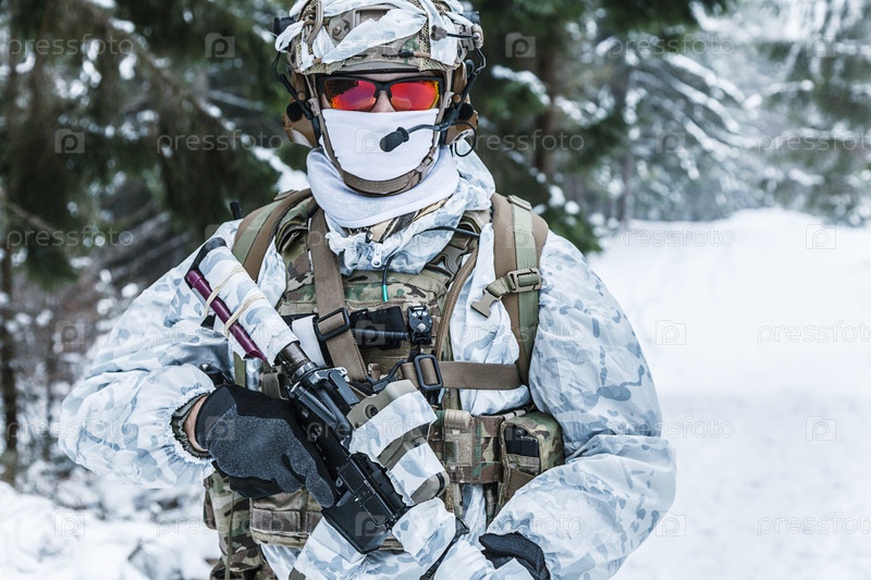 Военный зимой в лесу