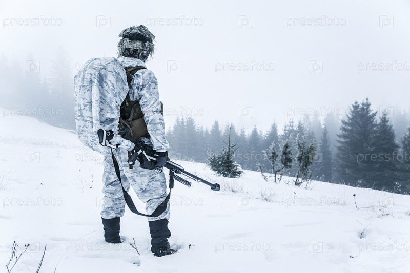 Военный зимой в лесу