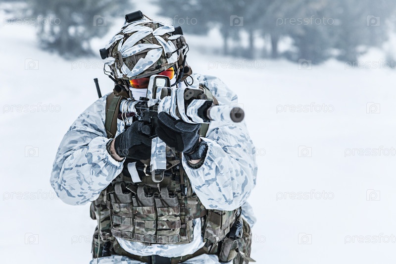 Военный зимой в лесу