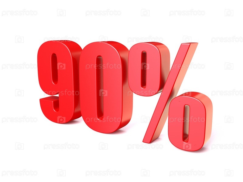 Красный знак 90 процентов. 3D
