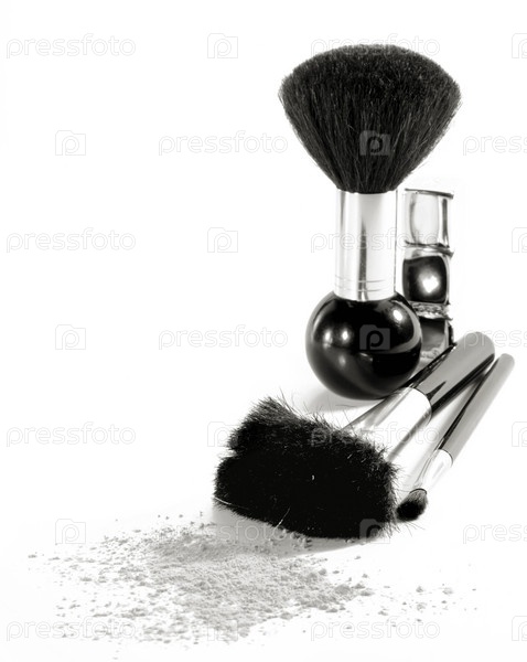 Набор кисточек для макияжа с пудрой на столе