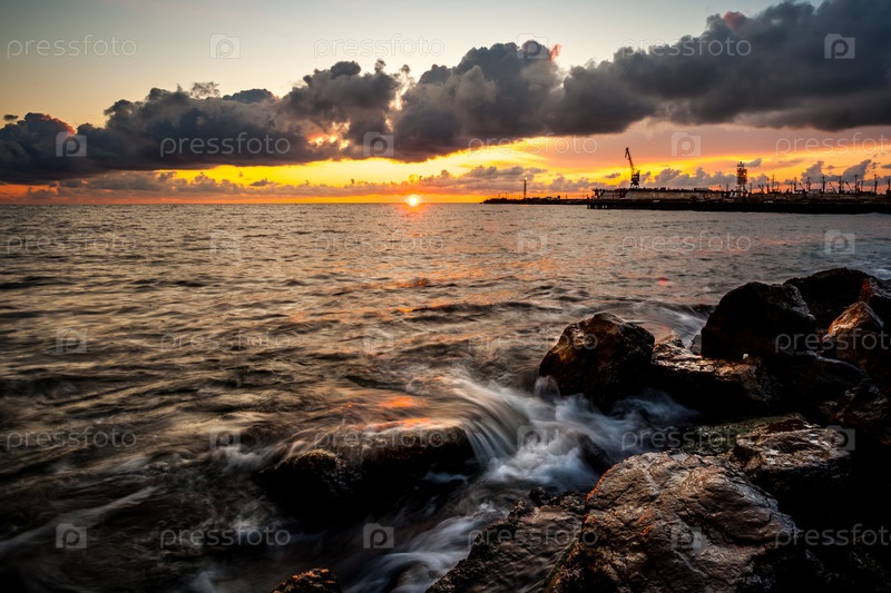 Красочный закат на Черном море, Поти, Грузия