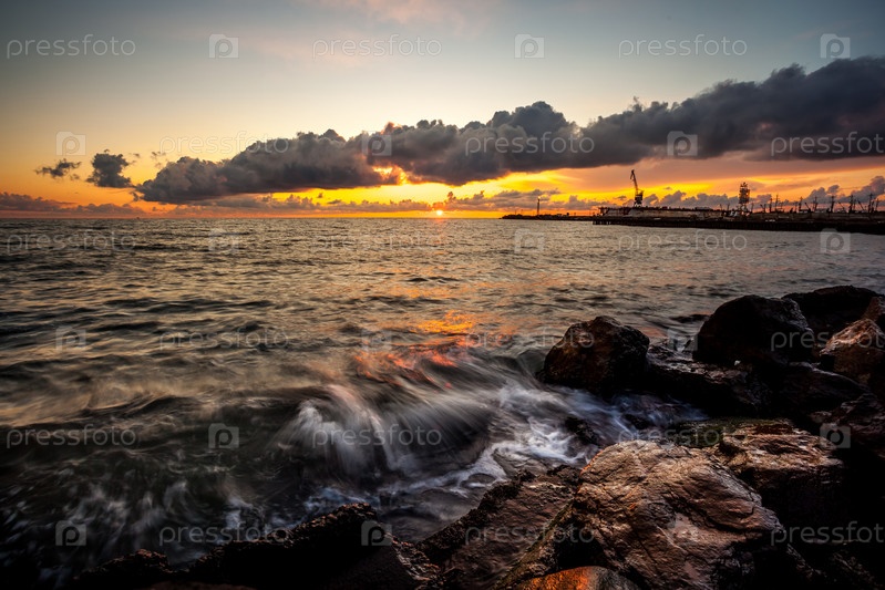 Красочный закат на Черном море, Поти, Грузия