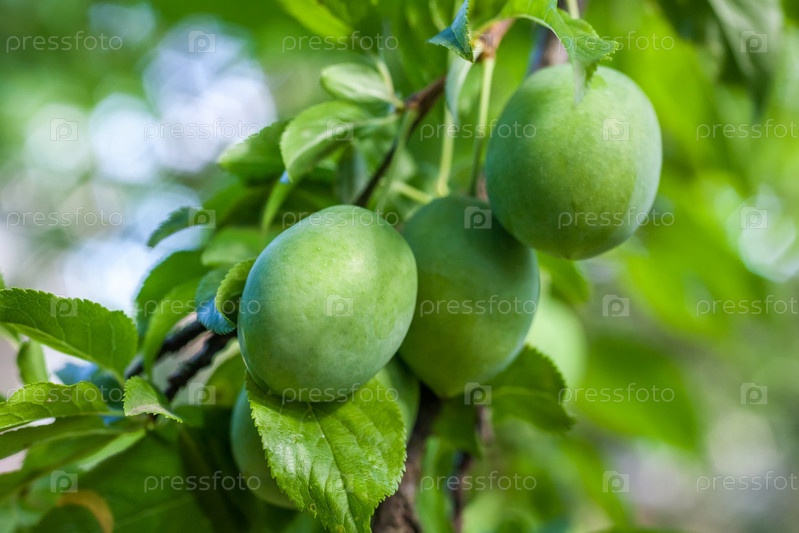 Ветки с зелеными сливами