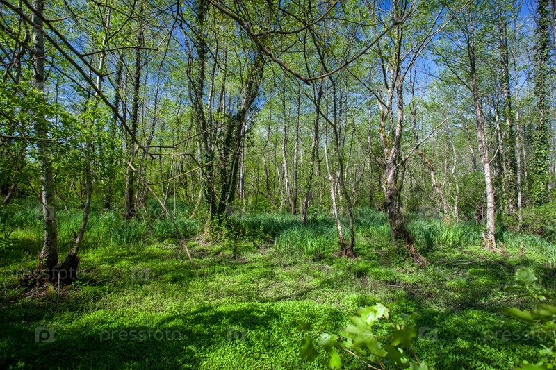 Красивый зеленый пейзаж весеннего леса, Национальный парк Колхети