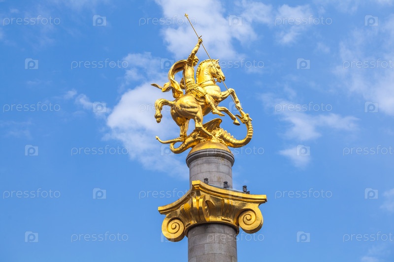 Золотая скульптура святого Георгия на площади Свободы в Тбилиси