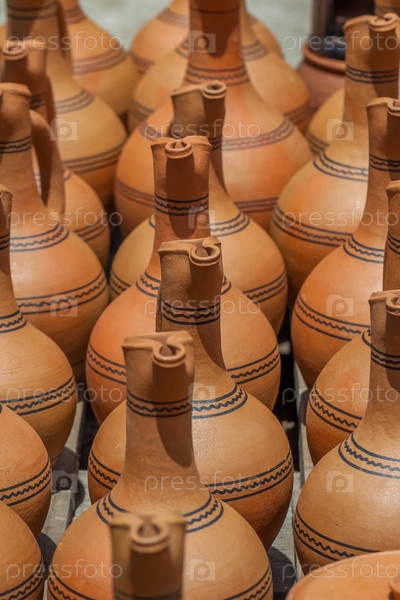 Традиционные грузинские глиняные кувшины для продажи в деревне Шроша, Грузия