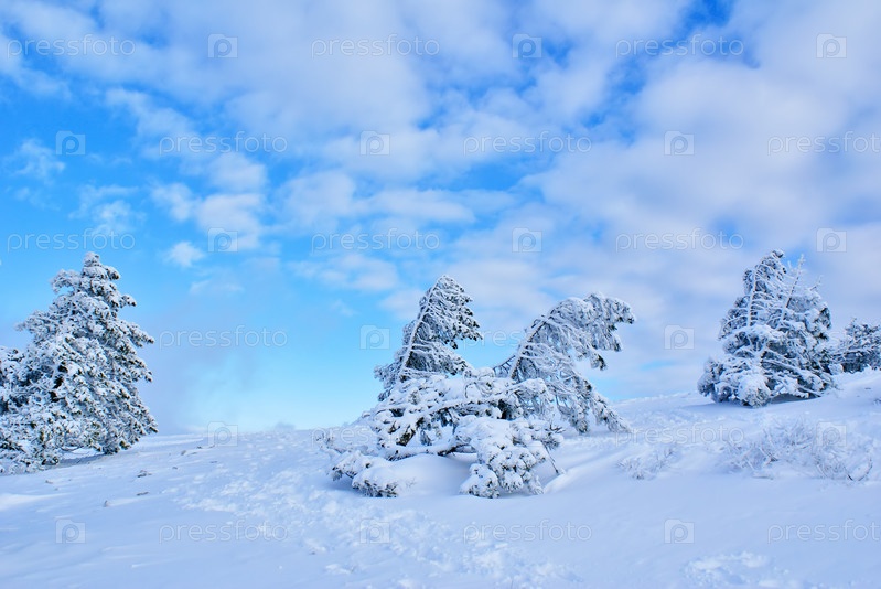 Красивый зимний пейзаж с покрытыми снегом деревьями