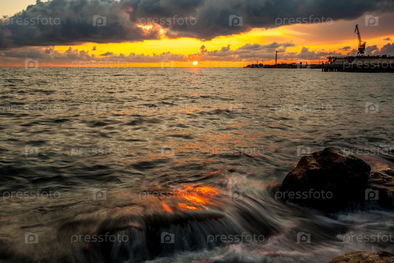 Красочный закат в Черном море, Поти, Грузия