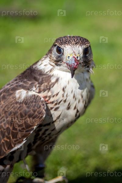 Сокол с кровавым клювом после еды