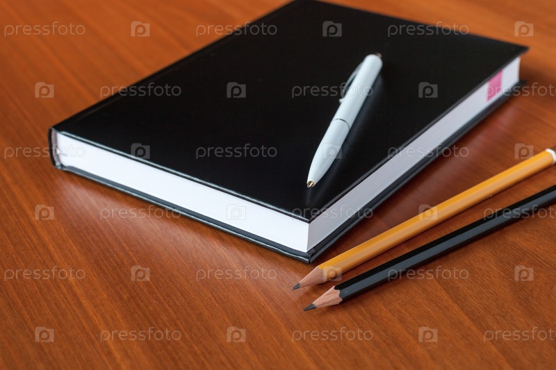 Черный дневник с ручкой и карандашами