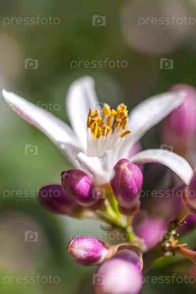 Цветы лимонного дерева среди листьев
