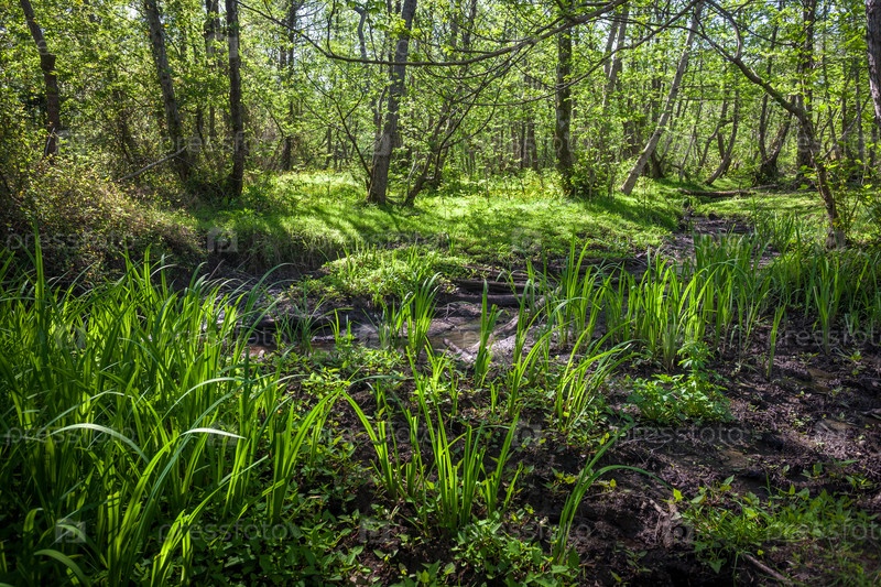 Красивый зеленый пейзаж весеннего леса