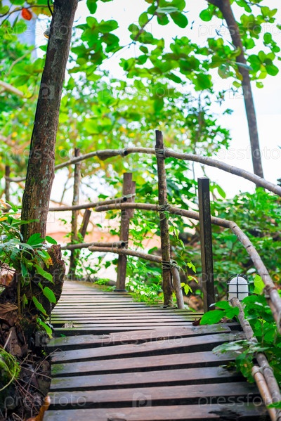 Деревянный путь в горах Таиланда