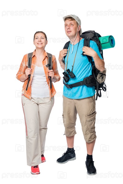 Туристы на белом фоне