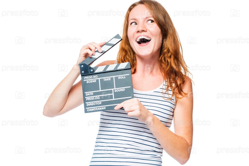 Эмоциональный портрет актрисы с киноклаппером