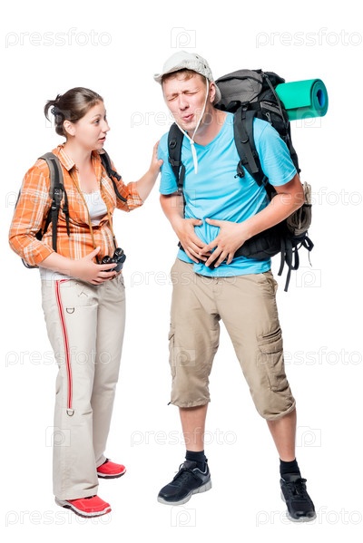Туристы на белом фоне