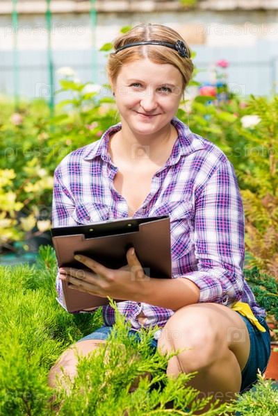 Девушка с папкой анализирует рост и развитие растений