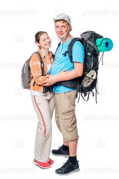 Пара молодых туристов с рюкзаками