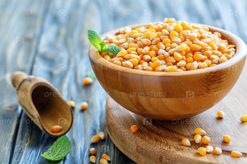 Зерно кукурузы в деревянной миске