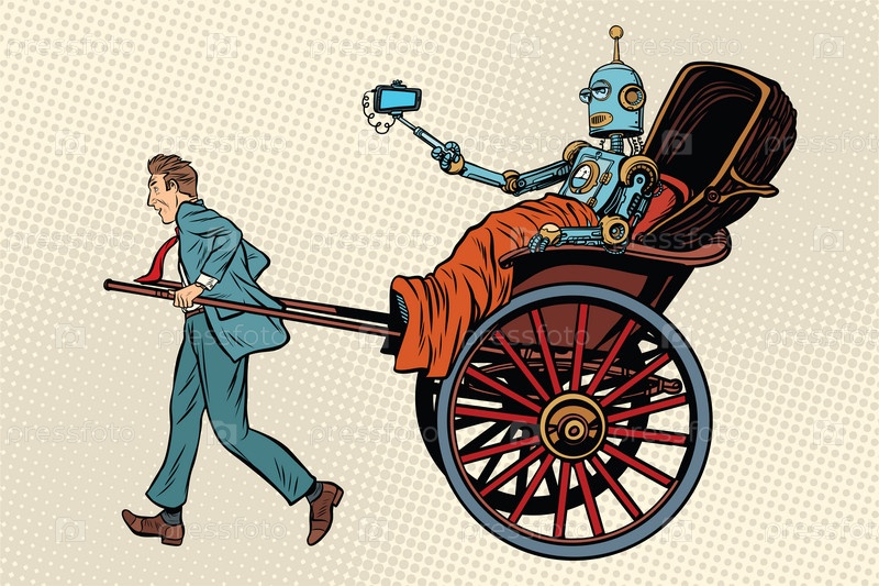 Бизнесмен везет робота