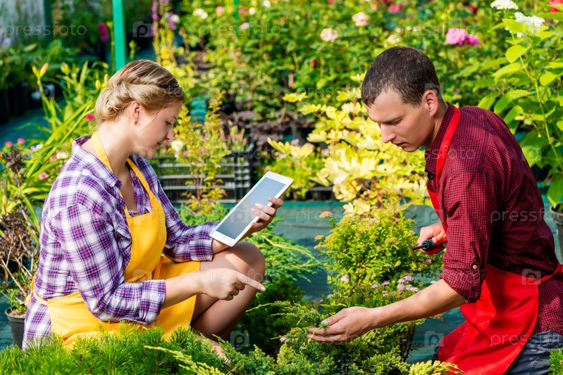 Пара садовников в теплице