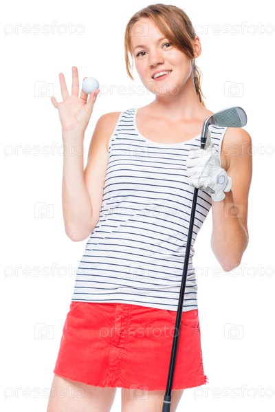 Девочка успешная гольфистка с реквизитом для игры