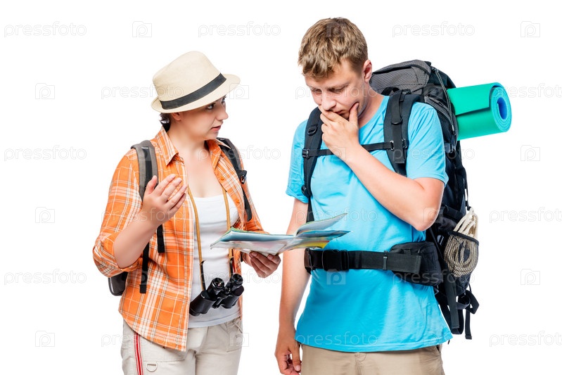 Суетливые туристы думают о маршруте с картой в руке
