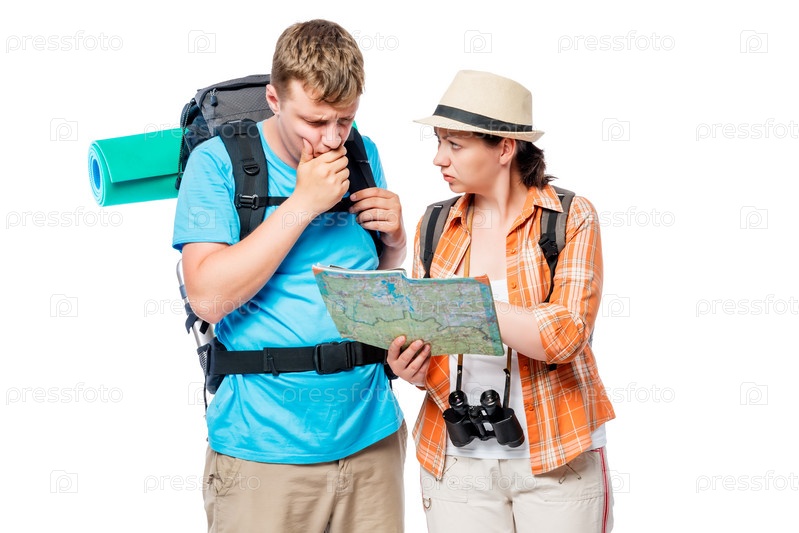 Туристы на белом фоне