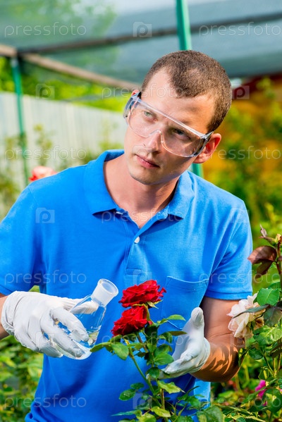 Биолог исследует цветы
