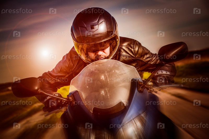 Байкер, мчащийся по дороге