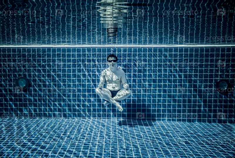 Мужчина под водой в бассейне