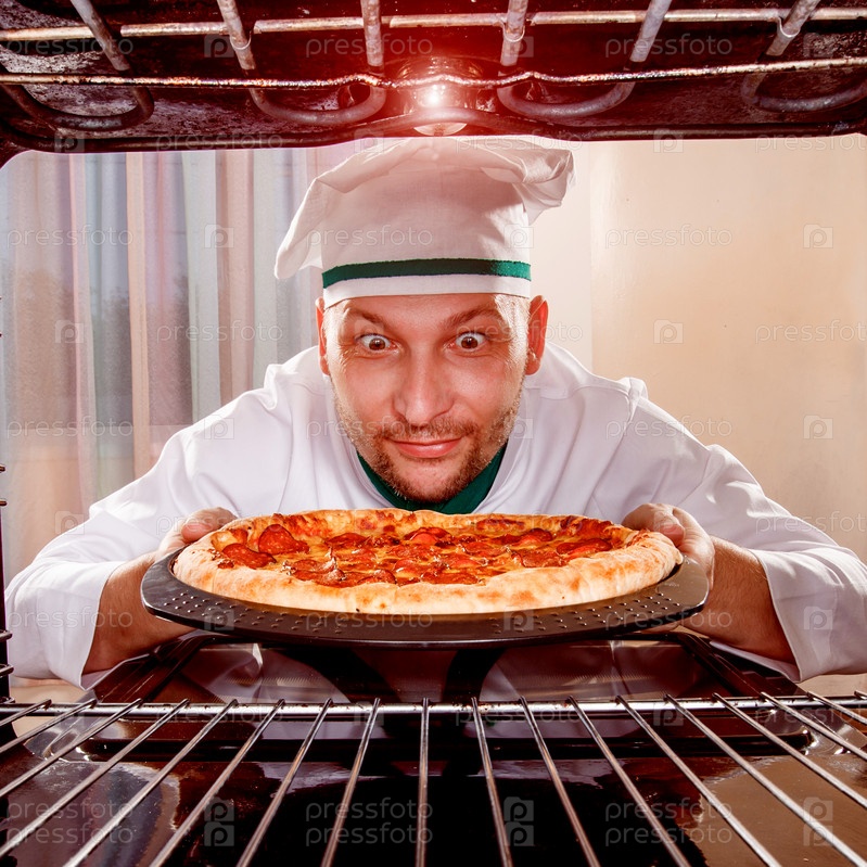 Шеф-повар готовит пиццу в духовке