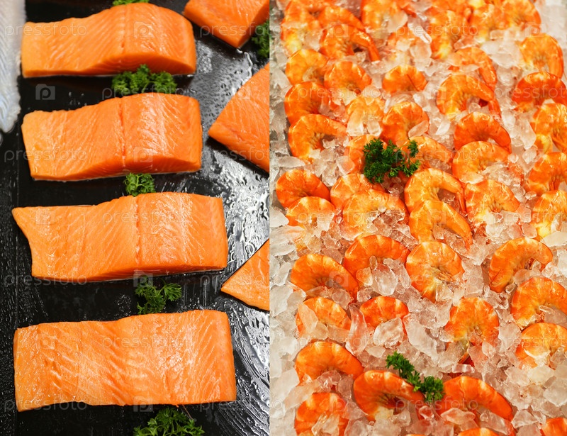Фотография вкусных креветок и рыбы