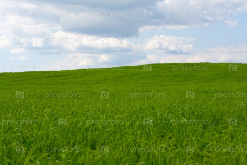 Зеленое поле на фоне голубого неба