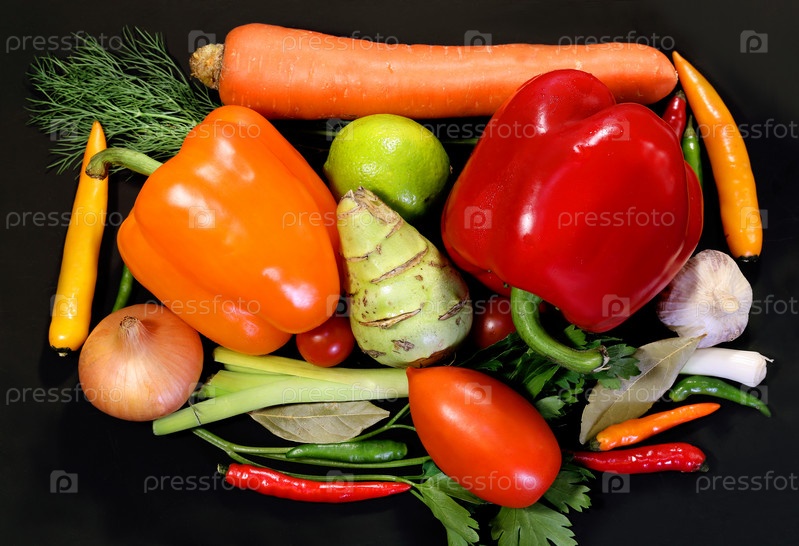 Свежие овощи на черном