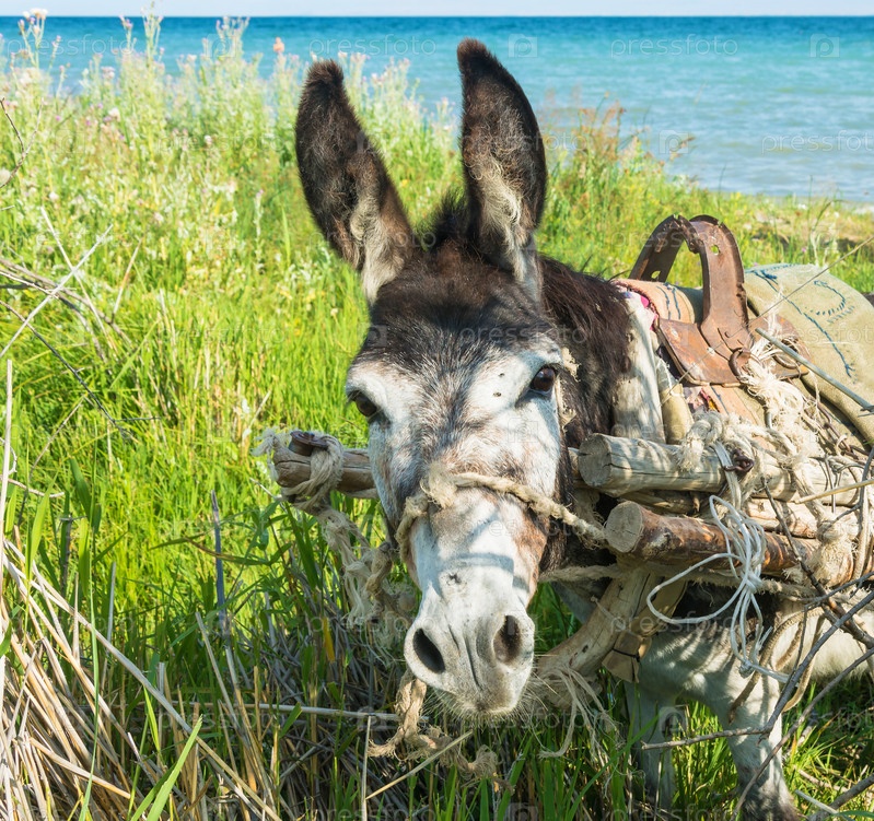 Маленький осел на берегу озера Иссык-Куль