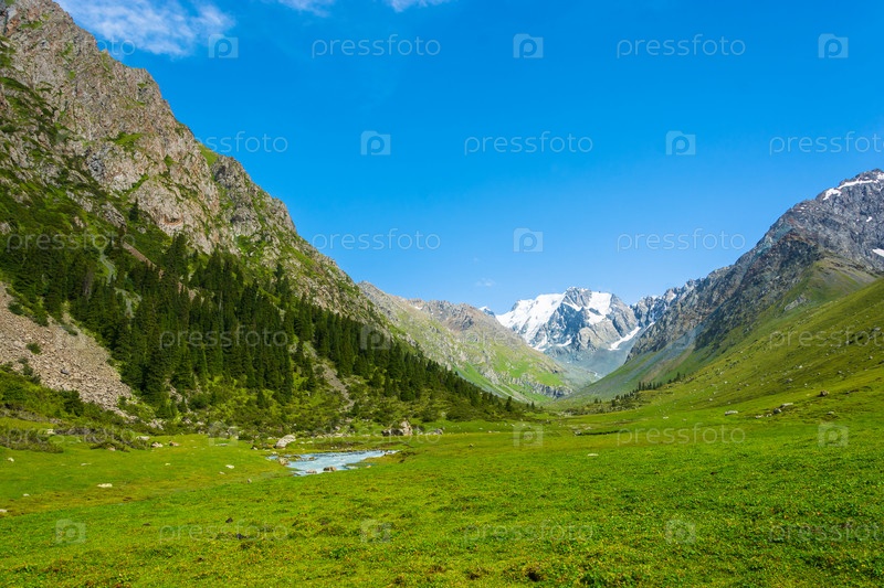 Горный пейзаж с заснеженными вершинами, Кыргызстан