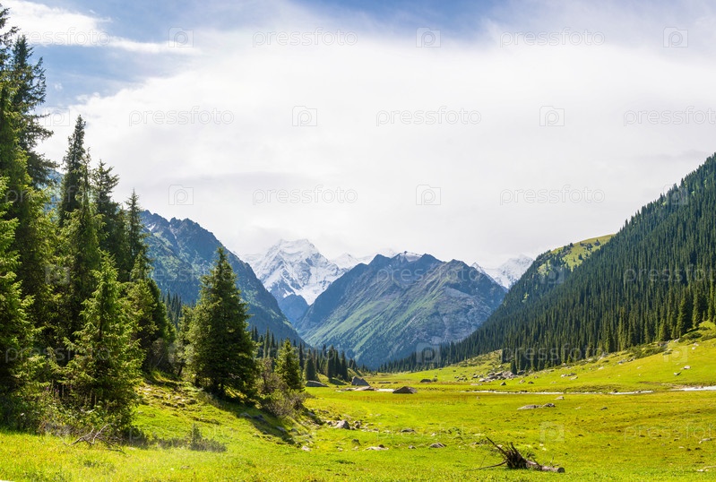 Горный пейзаж с заснеженными вершинами, Кыргызстан