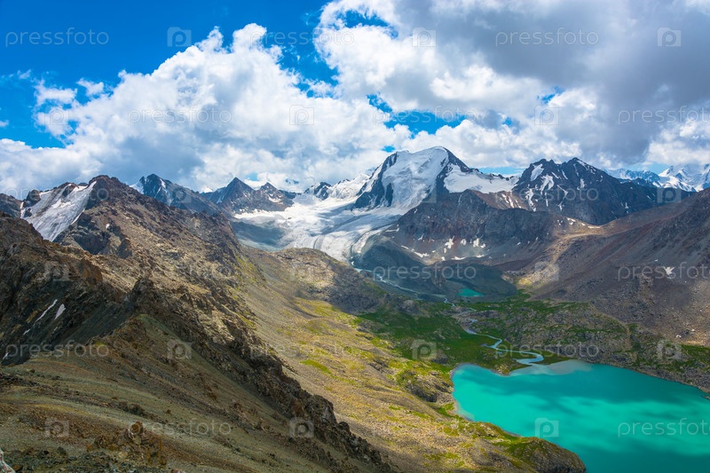 Пейзаж с горным озером Ала-Куль, Кыргызстан