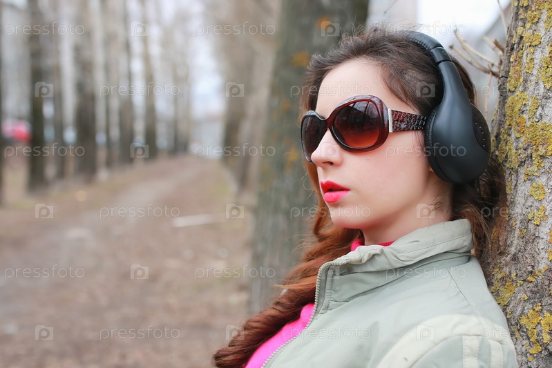 Женщина с наушниками в парке осенью