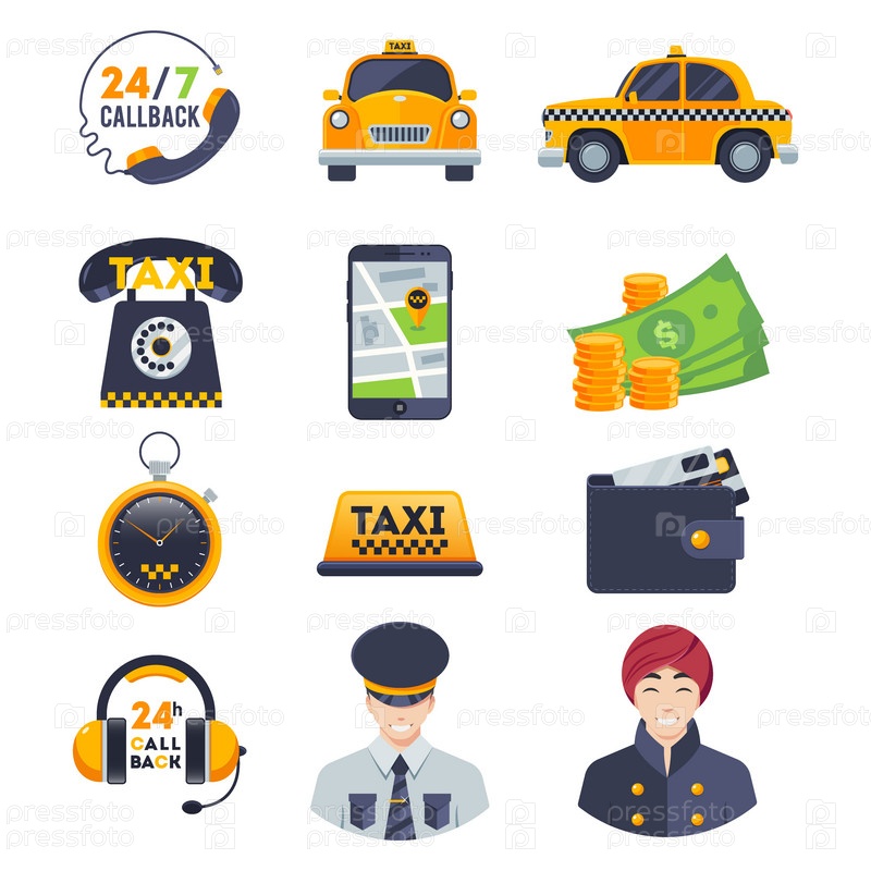 Набор цветных значков такси